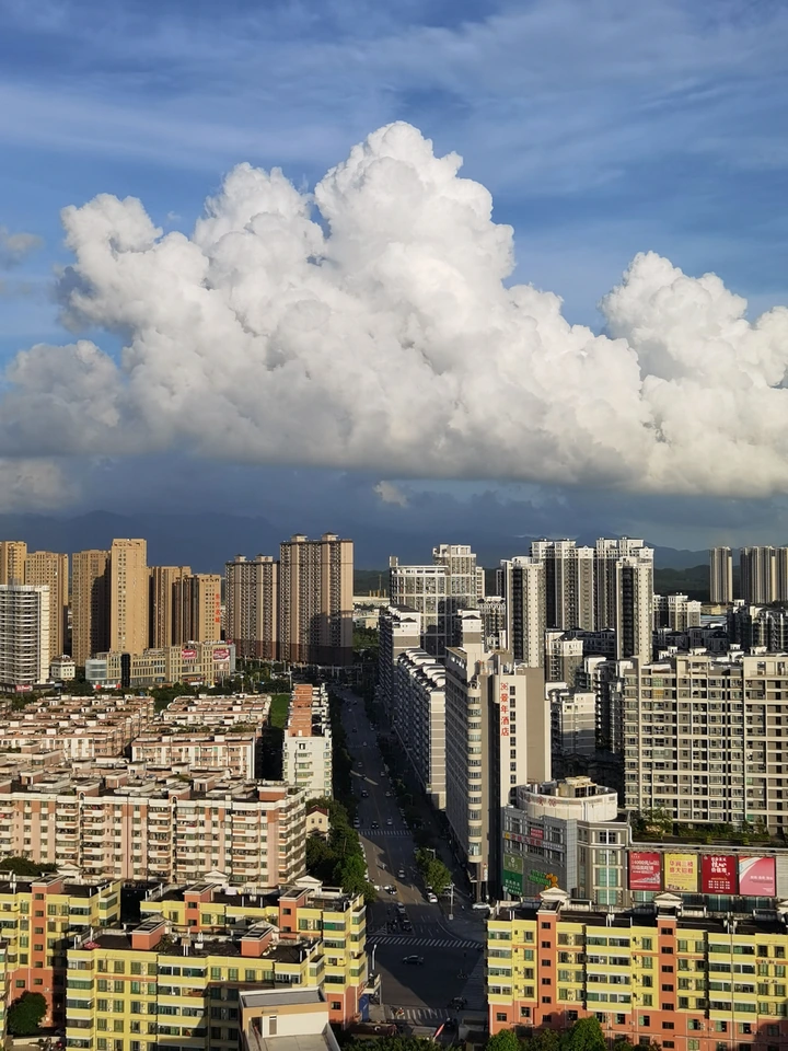 积雨云如巨兽静卧于楼宇之上,城市在它的呼吸里安然生长。风未起,云已至,一场盛大的留白悬浮于人间。这是天空与城市的对话,在磅礴的自然面前,我们的日常也成了值得敬畏的风景。