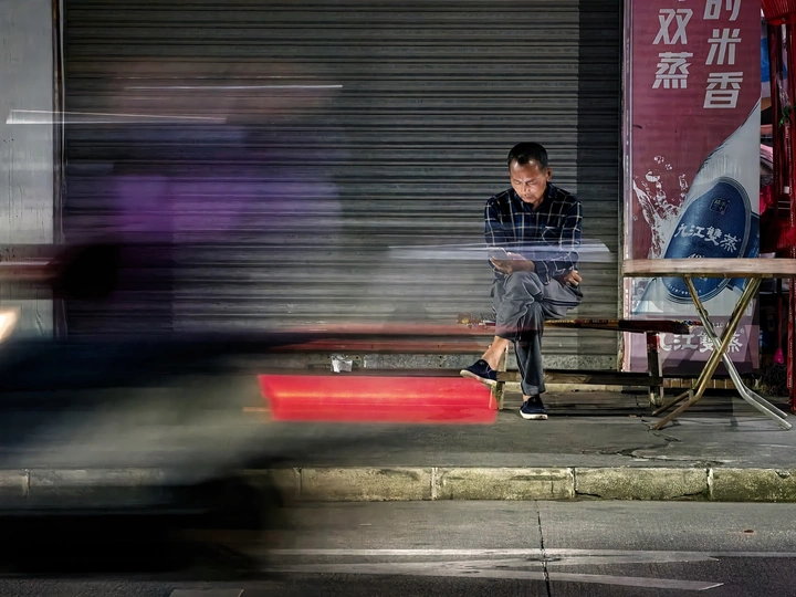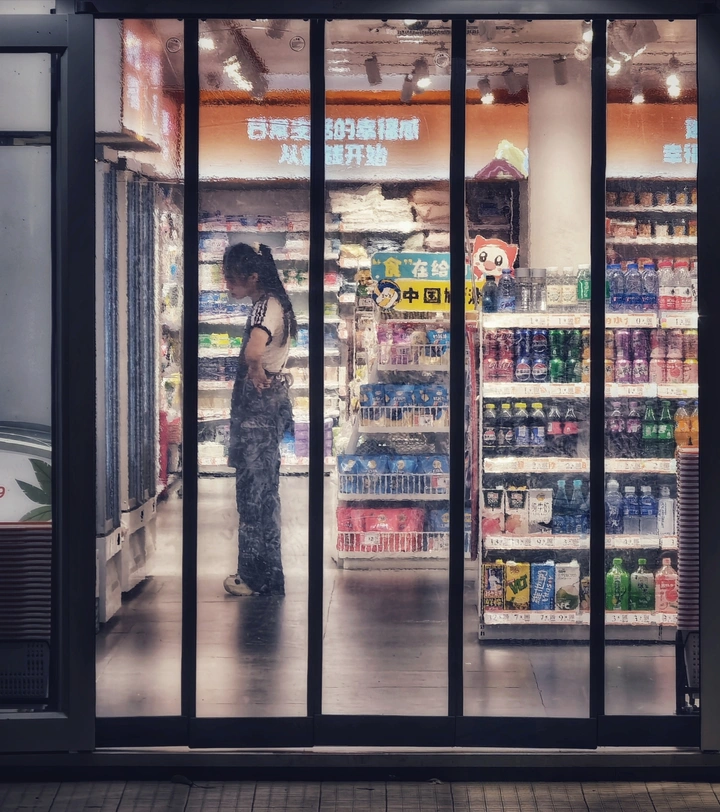 夜幕低垂,我站在便利店门口,透过塑胶门帘,看见一名店员手叉腰在查看商品。灯光把她的影子拉长,也把这平凡的夜晚,晕染成了一幅流动的画。原来最有趣的场景,就藏在市井烟火的寻常里。