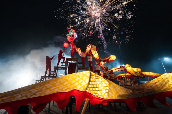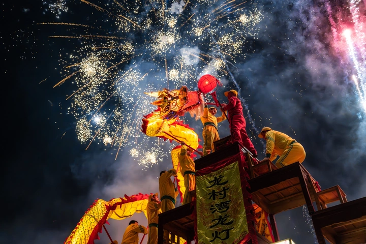 地处皖苏浙交界的郎溪,是吴越与徽州文化交融的走廊。每年腊月,乡民们以竹为骨、以纸为皮,描金绘彩,扎制出具有统摄江河之威的龙灯。 夜幕降临,漫天流火。从“双龙戏珠”到通天高台上的“老龙翻山”,人们在浓烈的硝烟与火光中舞动巨龙。乡邻们穿梭于龙身之下,将一年的晦气抛在身后,沐浴龙的瑞气。这不仅是一场祈求风调雨顺的乡土仪式,更是宗族血脉在时间长河中凝结的精神图腾。 百年岁首,乡土沸腾。在这片土地上,自泥土中升腾起的倔强与热烈,以及每一个在平凡日子里挺直脊梁的人们,构成了世间最真实的祥瑞。