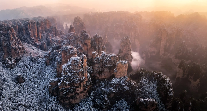 1张雪霁金乌破寂寥,琼峰万壑裹银绡