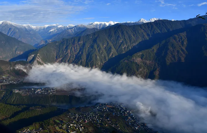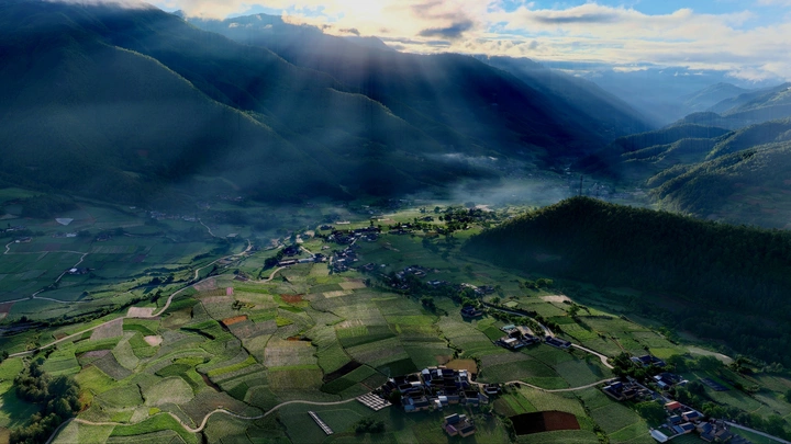 晨雾如纱,轻轻覆在六库的肩头。远处的山影在奶白色的雾气中若隐若现,怒江的水声也朦胧起来。吊脚楼的轮廓被晕染成水墨,街角的早点铺亮起橘色灯火,像未醒的梦里不小心漏出的光。整座小镇正从潮湿的梦境中翻身,却还不愿睁开惺忪的眼睛。