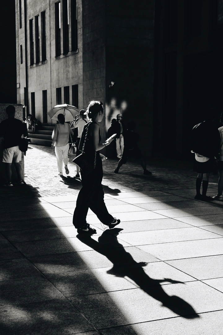魔都的黑白是光写给影的情书。外滩源的光掠过圆明园路,石库门拱券把天空裁成高定剪影。女郎踏过水门汀,风衣角掀起魔都的魅力。外滩源的黑白光影掠过圆明园路,石库门拱圈把天空裁成高定剪影。女郎踏过水门汀,裙边角掀起百叶窗的光栅;万国建筑做她们的T台。魔都的魅,不在色,而在灰阶深处。