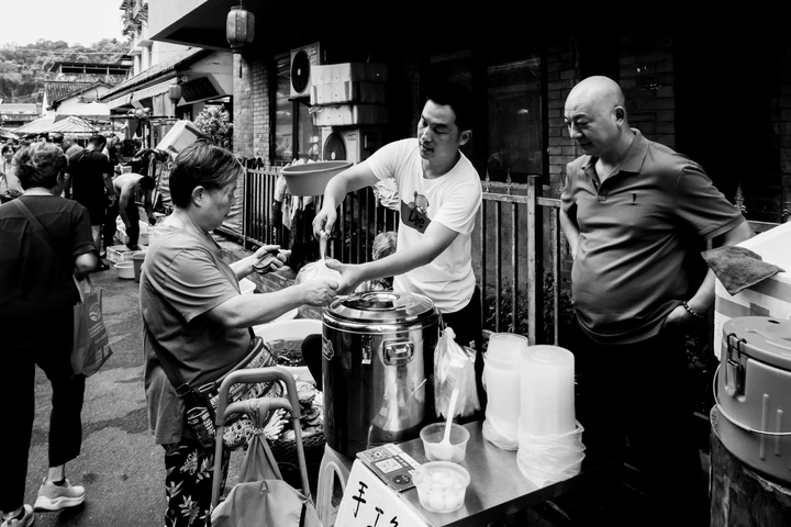 去掉色彩的集市,能够感受到最浓烈的烟火气。繁华不必鲜艳也能滚烫。