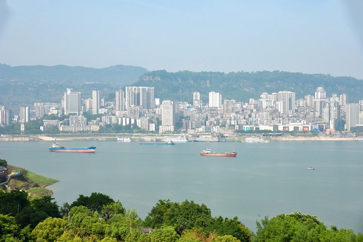 这是在长江重庆万州段的江面拍摄的。三峡工程将库区的水面变成了湖面,很平静。这是上午,太阳照耀下,水面波光粼粼。那些船都停泊在岸边,让这黄金水道显得有些冷清,而记忆中这江面应该是船来船往的。
