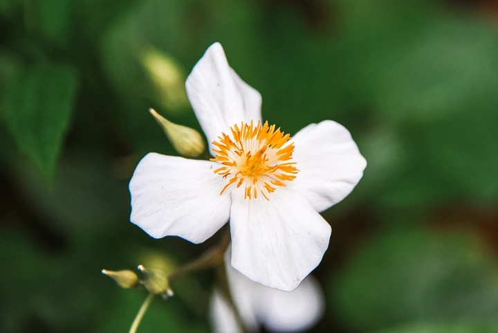 这是在一个山上的森林里拍摄的野花。森林里的树木郁郁葱葱,走在其中,阴森森的。就在树林的开阔地带,有几朵这样的野花正盛开,很吸引我们的目光,于是拿出相机拍下了这美丽的瞬间。林中的光线感觉不太充足,所以拍摄了好几张,有的糊了,但在这寂静的林子里,盛开的花还是盛开。