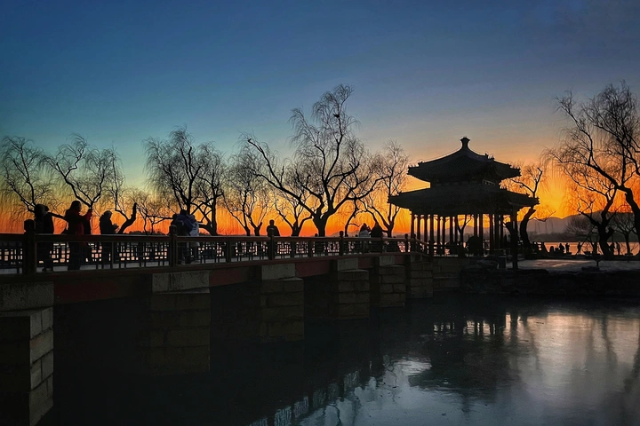 色彩:夕阳的暖色调与天空的冷色调形成了对比,色彩过渡自然,营造了一种宁静的氛围。不过,可以尝试调整色温,让暖色更加突出,增强视觉冲击力。 光影:光线主要集中在天空和水面,前景略显暗淡。可以尝试在拍摄时使用HDR模式,或者在后期处理中提亮前景,增加层次感。 构图:构图基本符合三分法原则,主体建筑位于画面右侧,较为突出。但前景的桥梁略显拥挤,可以尝试调整拍摄角度,简化前景。 后期处理:后期处理整体效果不错,但略微有些平淡,可以适当增加对比度和饱和度,让画面更加生动。 主题原创性:照片展现了夕阳下的宁静景色,主题较为常见。可以尝试寻找独特的拍摄视角,或者在画面中加入一些更具个性化的元素。 情感共鸣:照片能够引起观者对宁静、祥和氛围的共鸣,但略显平淡,可以尝试通过色彩和光影的调整,增强情感的表达。 思想深度:照片主要展现了自然景色,思想深度较为有限。可以尝试在画面中融入一些人文元素,或者通过照片表达对自然、人生的思考。