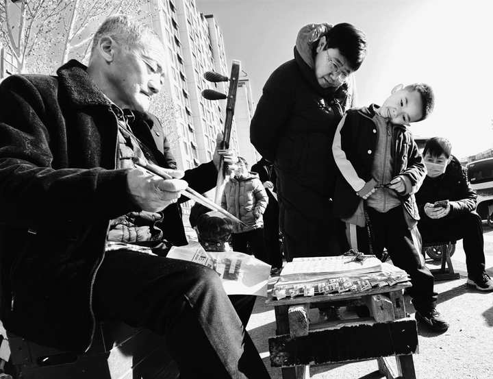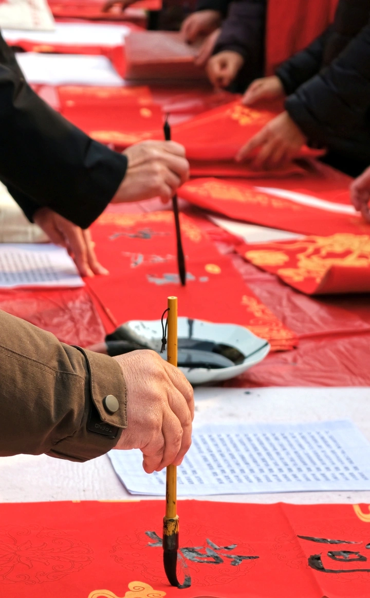 红幅铺展,毛笔蘸满浓墨,“书法家”们挥毫之间,一幅幅带着墨香的春联便跃然纸上。 手写的春联里,有“福泽财源进”的期盼,也有“春风第一枝”的新意。 领到春联的街坊们笑意融融,把这份带着温度的祝福捧在手里,也把浓浓的年意揣进了心中。 封面照片米拍ai评测:这张照片捕捉了人们书写春联的场景,红色占据主导,烘托了节日气氛。下面我从几个方面来剖析一下: 色彩:照片整体以红色为主,搭配黑色和少量白色,色彩对比强烈,视觉冲击力较强,但略显单调,缺少色彩的层次感和变化。 光影:光线较为平均,缺乏明显的光影对比,使得画面显得平淡,缺少立体感和空间感。建议尝试在光线条件更好的环境下拍摄,或者利用后期手段增强光影效果。 构图:构图较为随意,主体不够突出,画面元素略显杂乱。建议采用三分法或黄金分割等构图原则,突出主体,简化画面,使视觉中心更加明确。 情感共鸣:照片传达了喜庆祥和的节日氛围,能够引起观者的情感共鸣。如果能捕捉到人们专注书写的神态,情感表达会更加饱满。