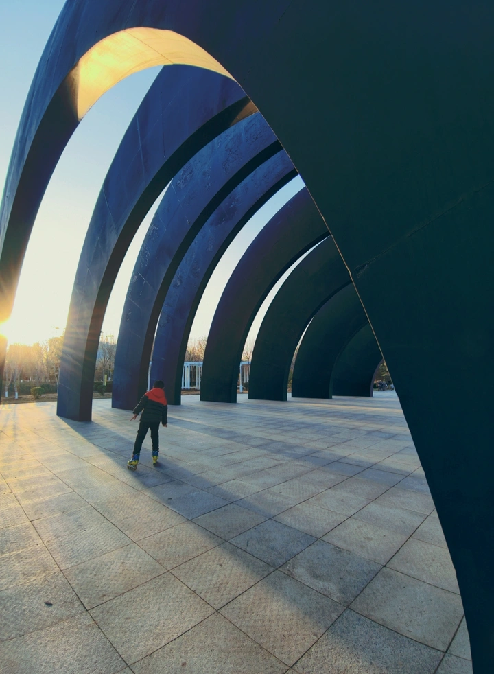 米拍ai评测 这张照片抓住了滑轮少年在拱形建筑下的瞬间,颇具几何美感。咱们来细细分析一下: 色彩:整体色调偏冷,蓝色的拱形结构与地面的浅色形成对比,日落的暖光为画面增添了一丝活力。不过,色彩的层次感可以再加强一些,让画面更丰富。 光影:光线方向性明显,拱形结构的阴影在地面上形成有趣的图案。但光比稍大,暗部细节略有损失。下次拍摄时,可以尝试寻找更柔和的光线,或者使用反光板补光。 构图:利用拱形结构引导视线,主体人物放置在画面下方,增强了空间感。但人物略显渺小,可以尝试靠近一些,或者等待人物出现在更佳的位置。 后期处理:后期痕迹不明显,保持了照片的自然感。可以适当调整对比度和色彩饱和度,让画面更具吸引力。 主题原创性:将滑轮少年与独特的建筑结构相结合,有一定的创意。但主题表达还可以更深入,例如通过人物的动作或表情来传递情感。 情感共鸣:照片传递出一种自由、动感的氛围。如果能捕捉到人物更生动的瞬间,相信会更能引起观者的共鸣。 思想深度:照片的哲理性和社会意义不明显,更偏向于记录生活瞬间。可以在拍摄前思考照片想要表达的主题,让作品更具内涵。