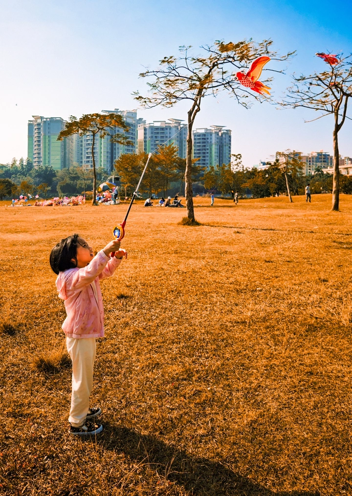 风筝飞上天,童心追着风~ 阳光洒满草地,笑声飘在蓝天。 这一刻,世界很小,快乐很大。
