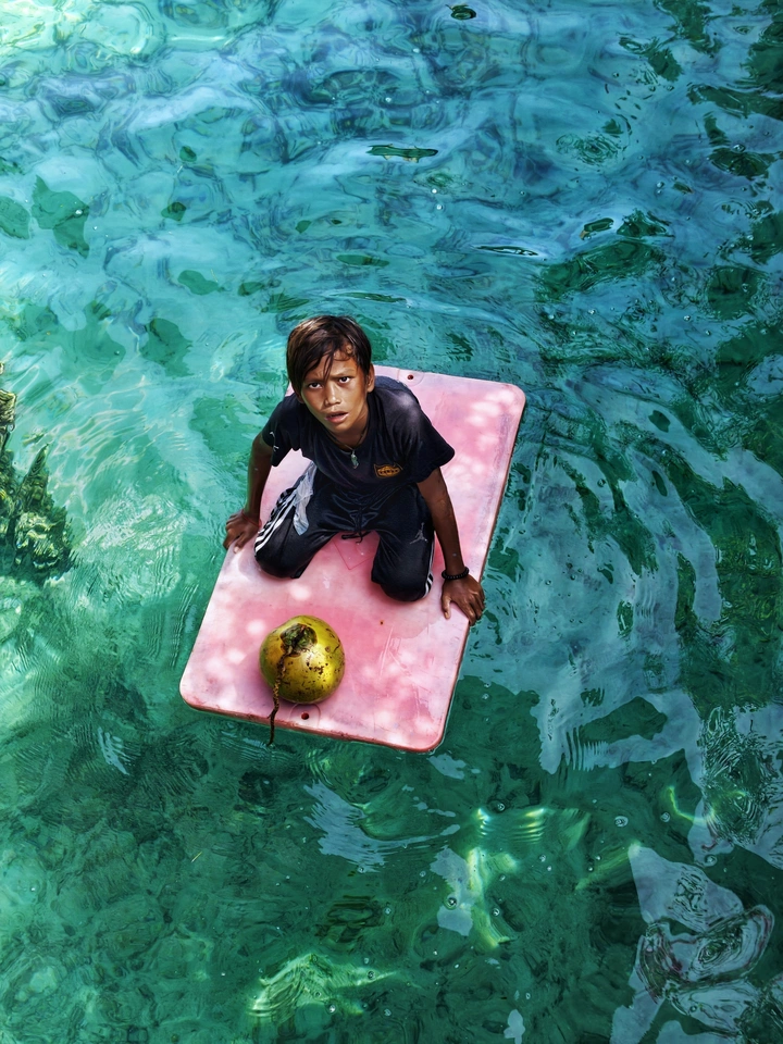 在仙本那的玻璃海上, 遇见一个以海为家的孩子。 一块浮板,一颗椰子, 就是他全部的“船”与“货”。 清澈的海水里, 藏着最原始的生命力, 也藏着这片土地最动人的烟火气。