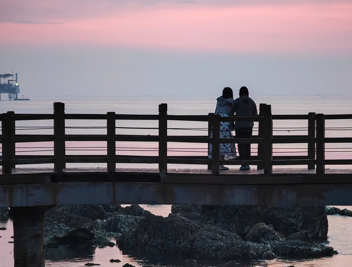 从画面呈现来看,这张照片很出色。 暮色下的海面与远处的工业设施形成独特景致,天空的粉紫与海面的蓝调相互映衬,色彩搭配和谐且富有氛围感。工业设施的灯光点缀其间,既展现出工业生产的蓬勃活力,又为画面增添了灵动的视觉焦点,整体构图平衡,将工业之美与自然暮色融合得较好,不过若能在细节处,比如近景水面元素的利用上更巧妙些,会更完美。