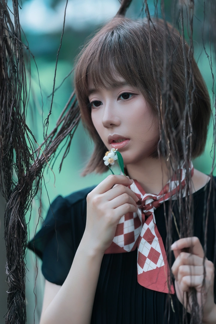 林间风卷绿意,也卷她幽怅。叶影里她伫立低眸,目光浸满愁绪。蓝绿衣摆融于草木,却融不散独处怅然,满目生机皆成孤忧底色,幽怅在林间无声漫延。