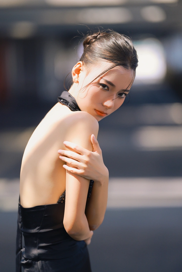 古巷深处,灯影摇曳。她着一袭雅灰长裙,于灯笼的暖光晕染中,或凝眸仰望,或执扇轻倚。传统灯韵与现代风姿交织,在青砖旧墙间,晕开一段关于古典诗意的温柔叙事。