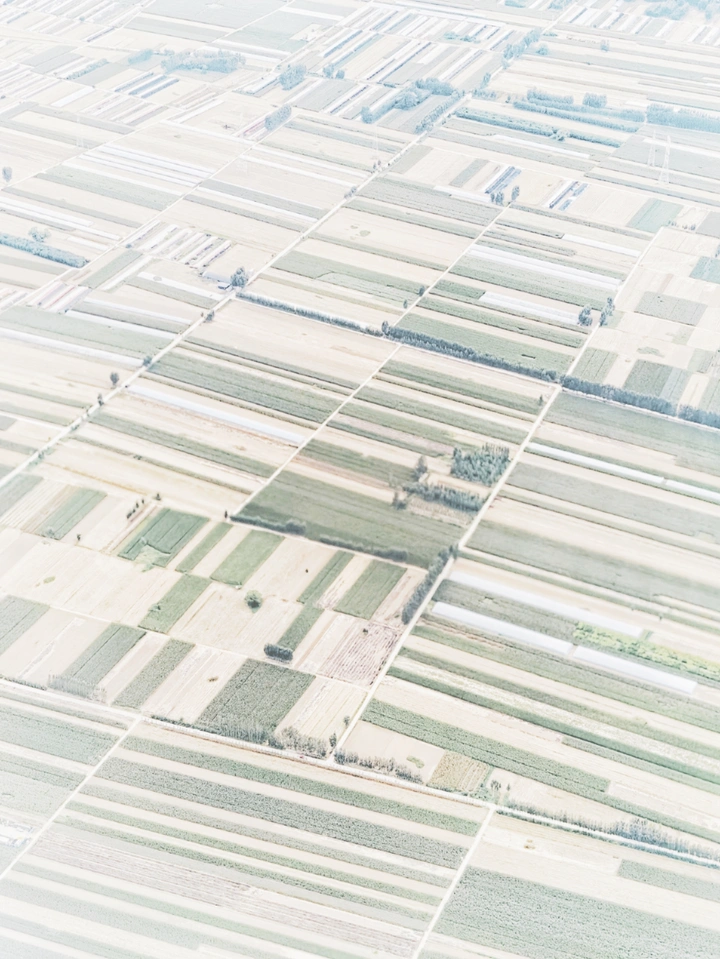 航拍视角下,农田如精心排布的格线,黄绿交织间,是农耕文明的秩序之美,也是大地写给季节的诗意篇章。