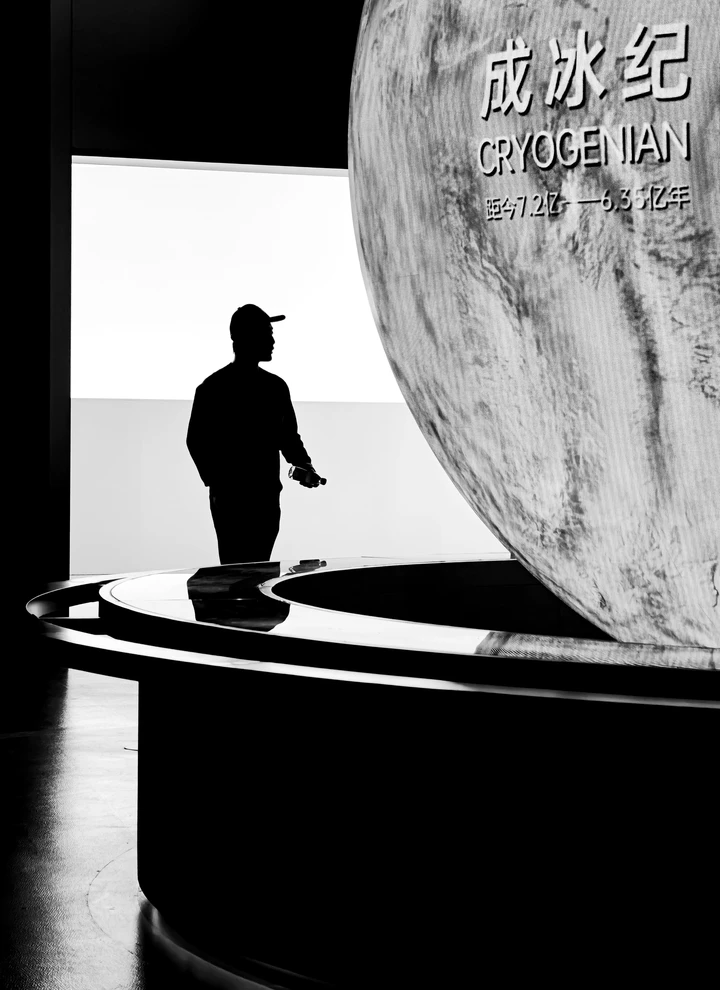 在成冰纪的展陈前,一个人的剪影,成为连接现在与远古的孤独注脚。