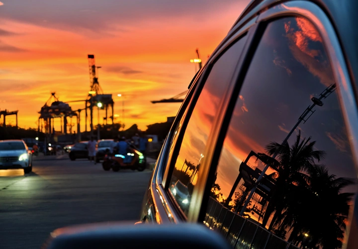 1张车窗里的落日码头