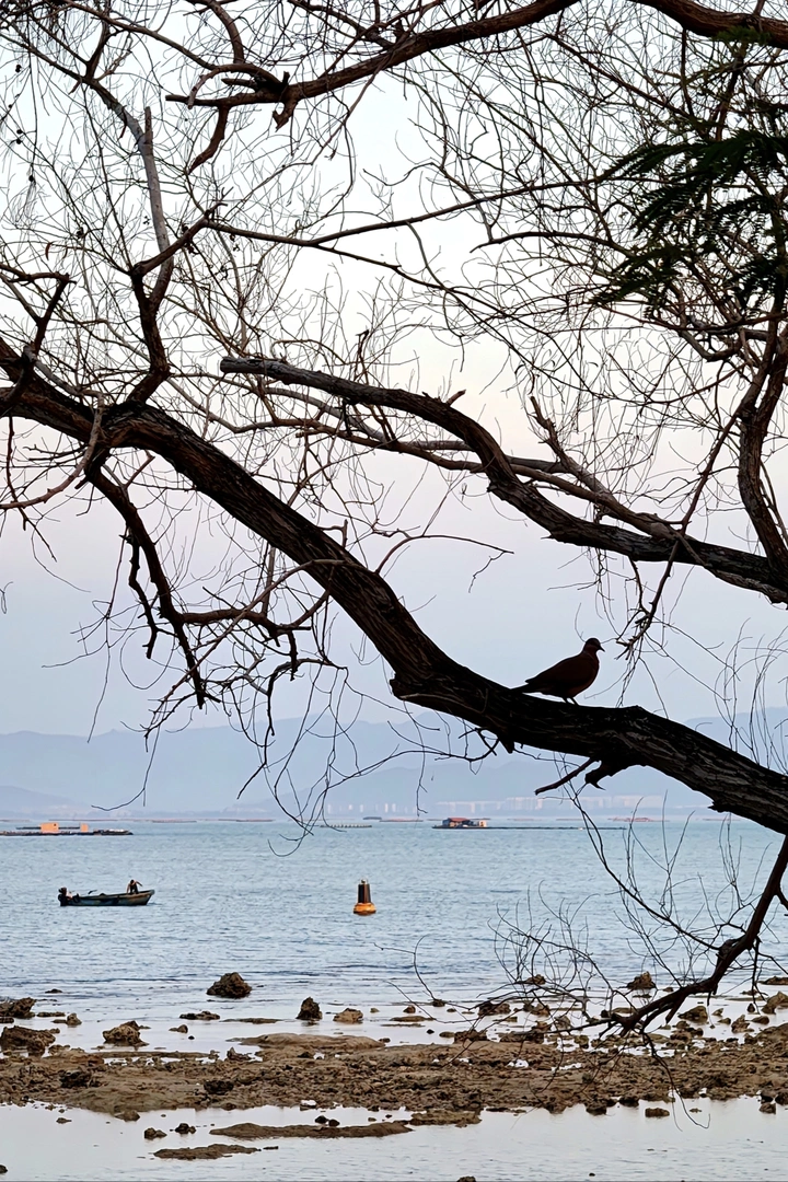 枯枝托住栖鸟的身影,碧波载着扁舟的渔梦,潮起潮落的晓色里,每一个行者都找到了暂时的归处。