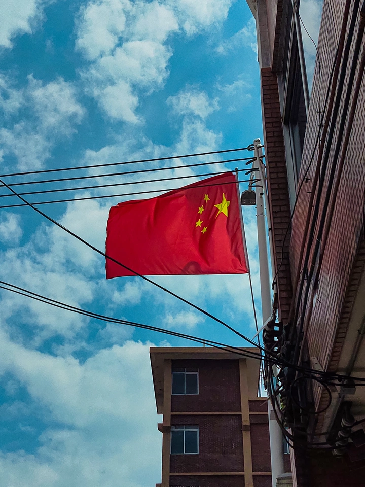 2张红旗飘扬