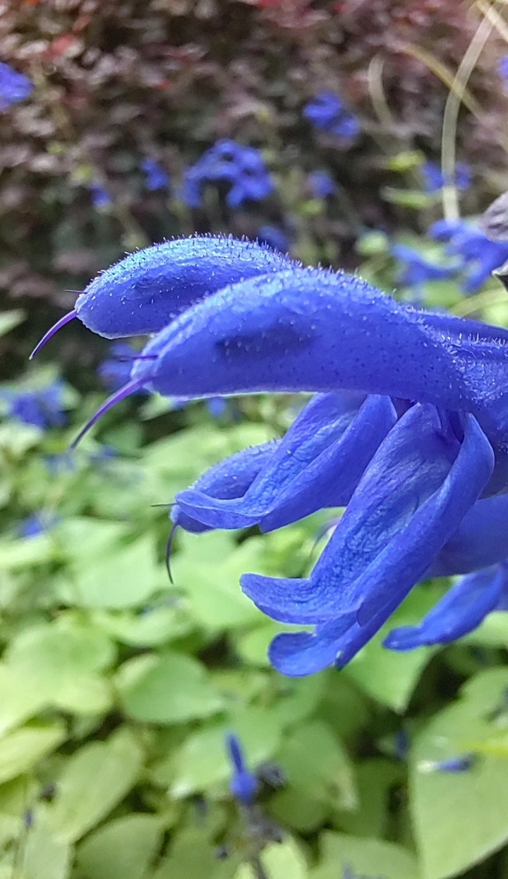 此花学名为深蓝鼠尾草。原产于南美洲,现在我国已有种植。其花以极深的蓝、紫色和特殊形态而颇受关注与喜爱。