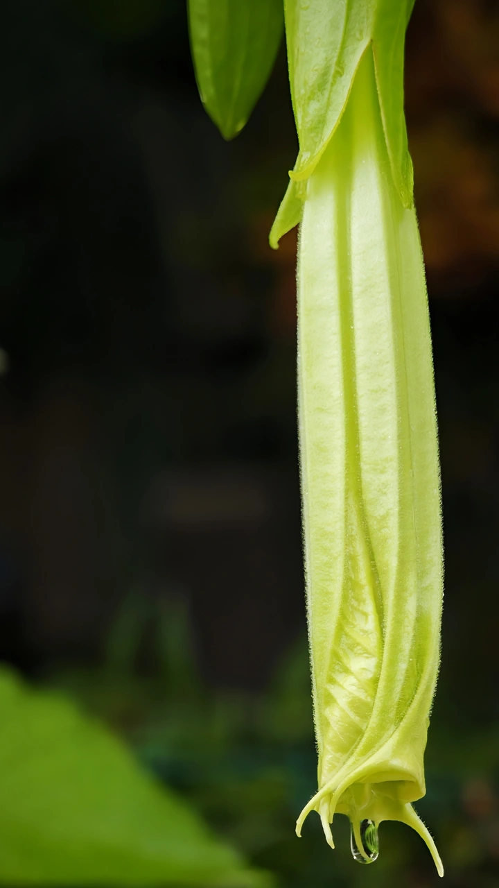 曼陀罗,长长的花苞与花朵,飘飘欲仙。常常被称为:“会发光的毒药”!