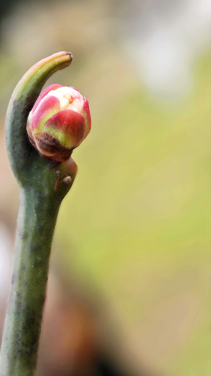 枝桠间,几颗红胭凝脂的花苞,裹着春的是诗语,静待花开!