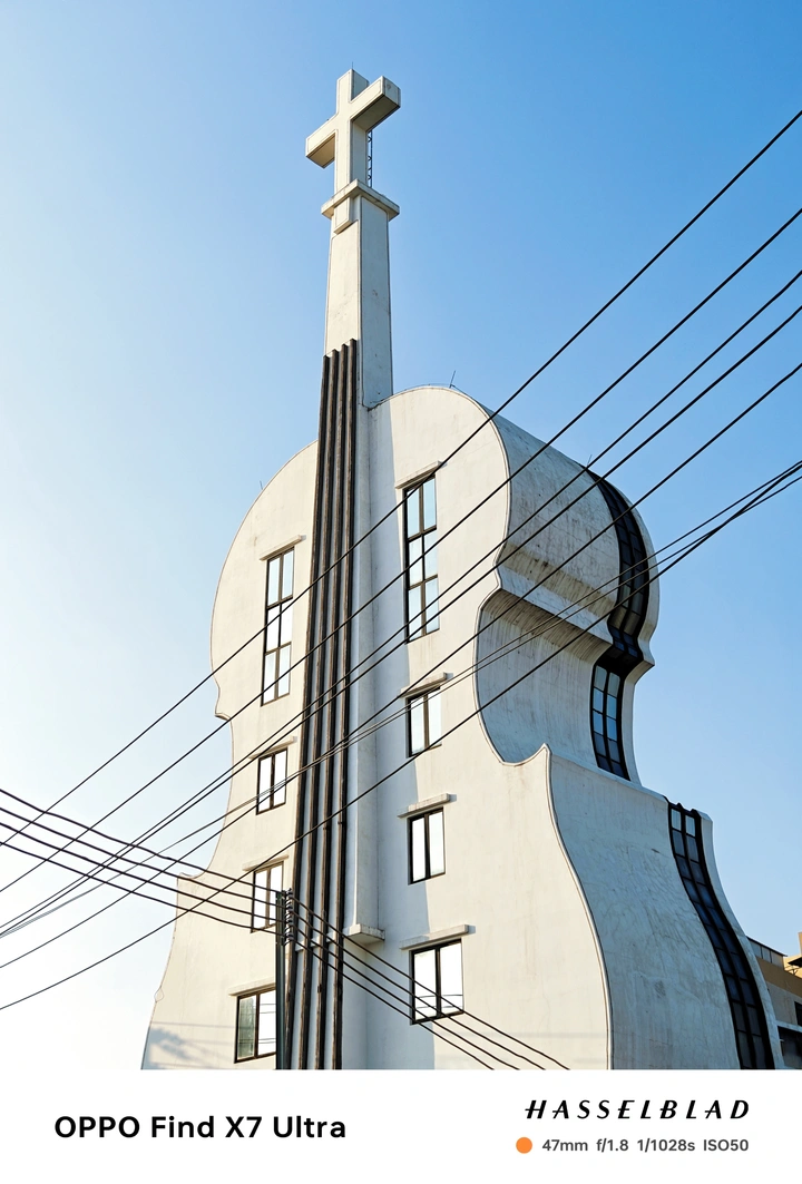 教堂是小提琴,电线是琴谱,正巧遇上黄昏,在夕阳下,奏响的神圣的音乐。?
