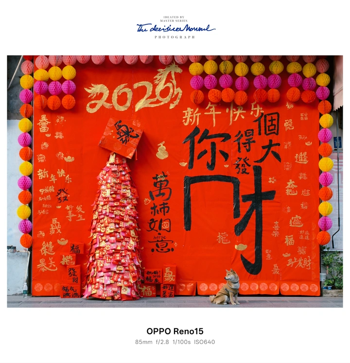 焕新后的挥春街张灯结彩,处处洋溢着喜庆的节日气氛。挥春师傅现场书写福字,吸引了络绎不绝的市民争相领取新年“福气”;醒狮表演的采青环节更是点燃全场热情,锣鼓声声将节庆氛围推至高潮;而醒狮、财神爷和可爱古仔组成的巡游队伍穿梭街巷,为街区增添了欢笑和喜悦。