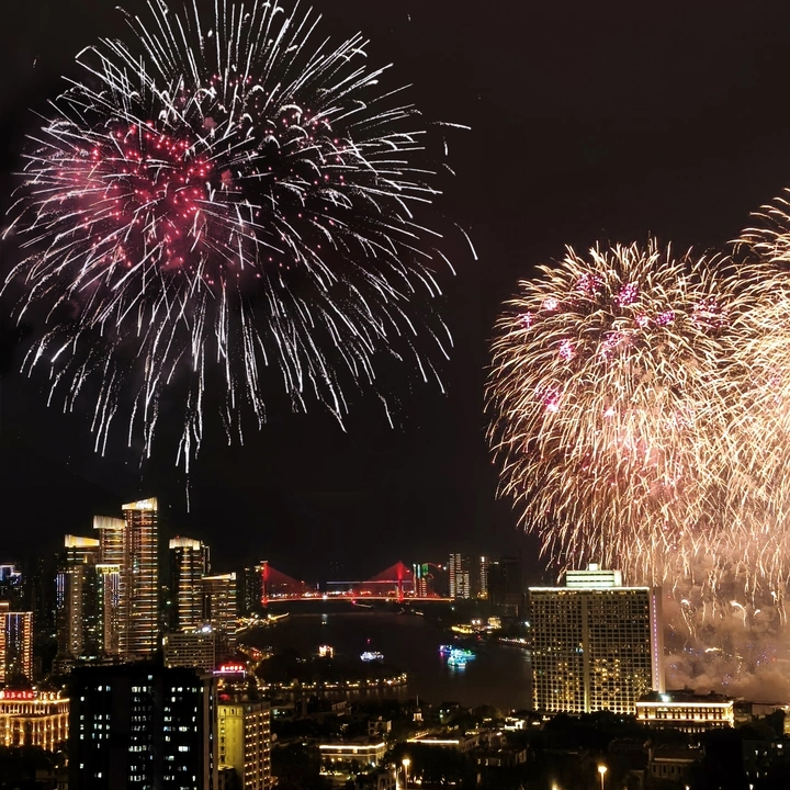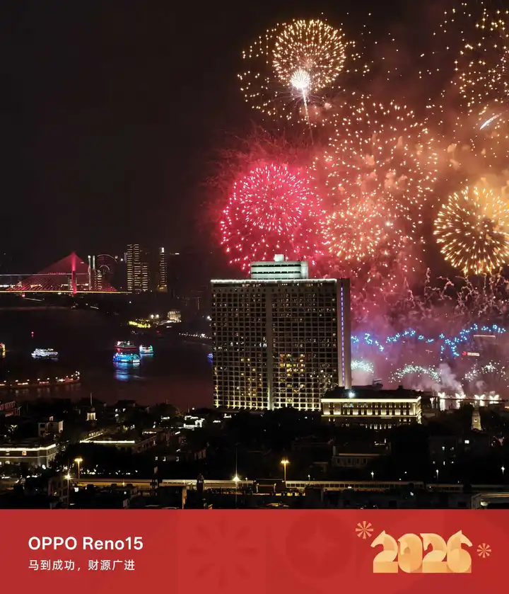 鞭炮声声辞旧岁喜迎大年初一到 这场以天为幕、以水为台、以城为景的视听盛宴,不仅用漫天华彩点燃了岭南新春的喜庆,更以璀璨光影描绘出一幅广州在“十五五”开局之年奋楫争先、湾区携手共赴新程的壮丽画卷。 本次汇演在燃放规模与技术呈现上进一步升级。燃放布局采用4艘燃放船及10个浮台,燃放宽度扩展至800米,礼花弹总数为15.38万发,其中高空礼花弹总数10728发,较去年增加约2000发,有效提升了观赏体验。汇演期间,广州配套推出珠江夜游的“美食烟花航班”,将看烟花、游珠江、品美食融为一体。白鹅潭周边酒店也推出烟花观赏房等服务,让大家通过更加丰富多元的方式参与这场新春盛宴。