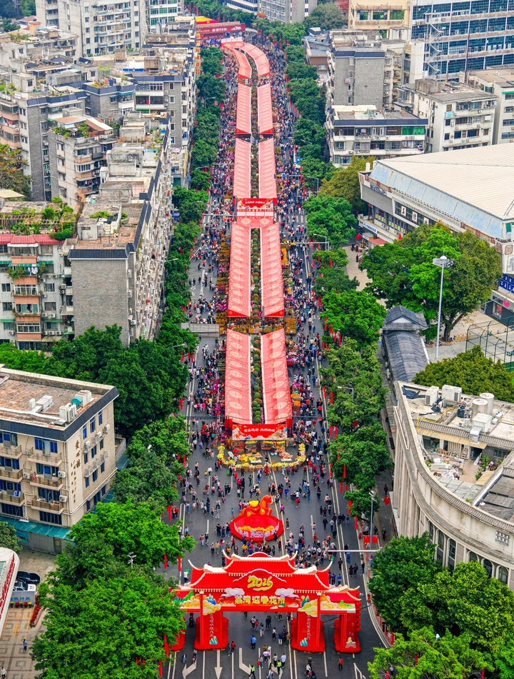 2026年广州荔湾区传统迎春花市启动仪式在荔湾路与中山七路交界处主牌楼下举行。主牌楼作为迎接八方来客的“岭南迎宾门”,融合岭南传统花窗与马年新春元素,寓意开门纳福、万事如意。 市民群众从四面八方汇聚荔湾路,共同见证这一传统年俗盛事启幕。
