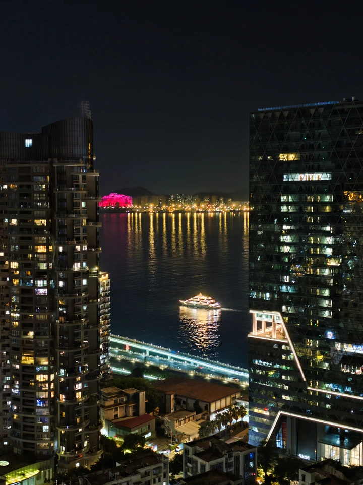 当暮色漫过鼓浪屿的海岸线,厦门的夜便醒了。 对岸的灯火与轮渡的航迹在海面织成流动的星河,老别墅的暖黄与新地标霓虹在视线里交错。我站在高处,看游船载着碎金般的波光驶过,听晚风里混着市井的烟火气与远处浪声。 这是属于鹭岛的温柔时刻,不必追赶什么,只需要让目光跟着灯火蔓延,让心在江风里轻轻晃荡。