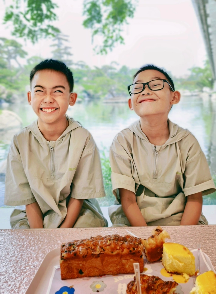 在满是绿意的窗边,两份一模一样的笑容撞进镜头里。 一个眯起眼睛笑得露出虎牙,一个仰起脸把快乐写满嘴角。 面前的蛋糕还留着刚切下的痕迹,空气里都是甜香。 最好的时光,就是和你一起,把寻常日子过成双倍的甜。