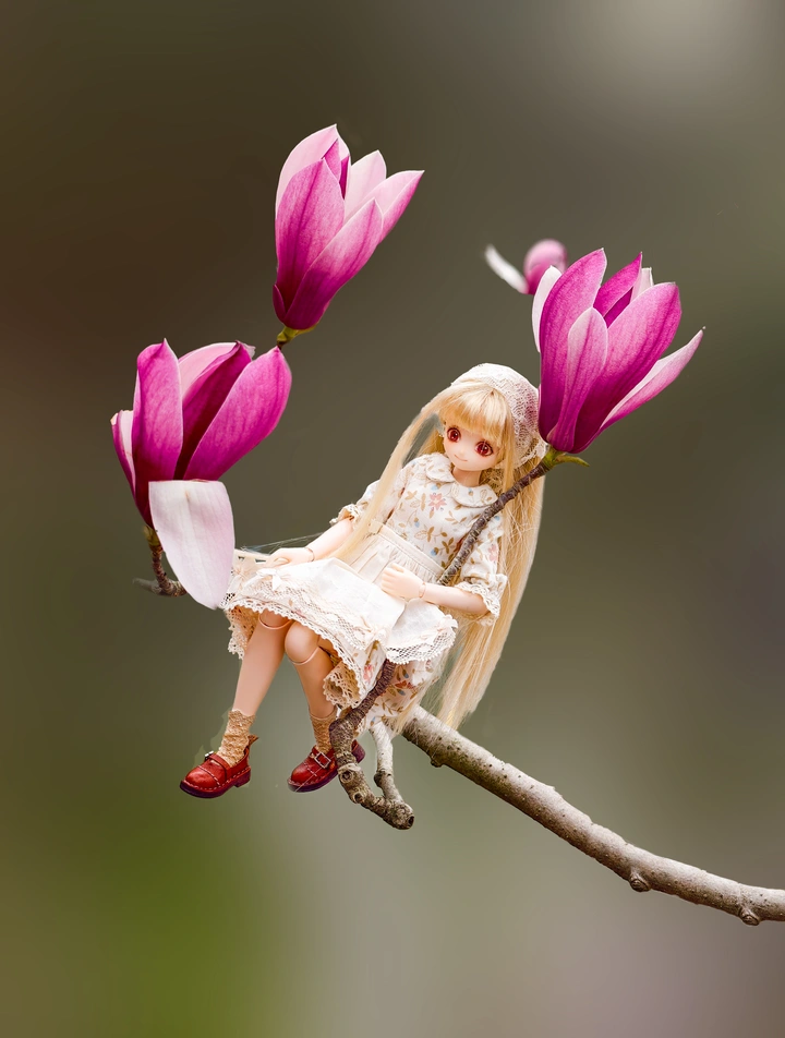 在春光正好的日子里,发现了一个秘密花园。 人偶小姐姐安静地依偎在紫玉兰枝头,像是在轻声诉说着春天的故事。 花瓣轻拂,光影摇曳,每一张照片都是一幅独立的画作。 无论是静坐枝头的安然,还是轻触花瓣的灵动, 都完美诠释了什么是“岁月静好”。 用镜头捕捉这份独属于春日的浪漫,分享给社区里的每一位朋友。