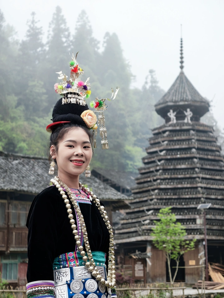 晨雾漫过鼓楼的檐角,青石板路被湿气晕出柔光。 一身侗装,一身银饰,在古寨的肌理里,捕捉属于这里的温柔与厚重。 vivo X300 Ultra 记录下的每一寸光影,都是岁月沉淀的诗意。 #侗族 #人文摄影 #古寨风情 #vivo摄影 #米拍精选