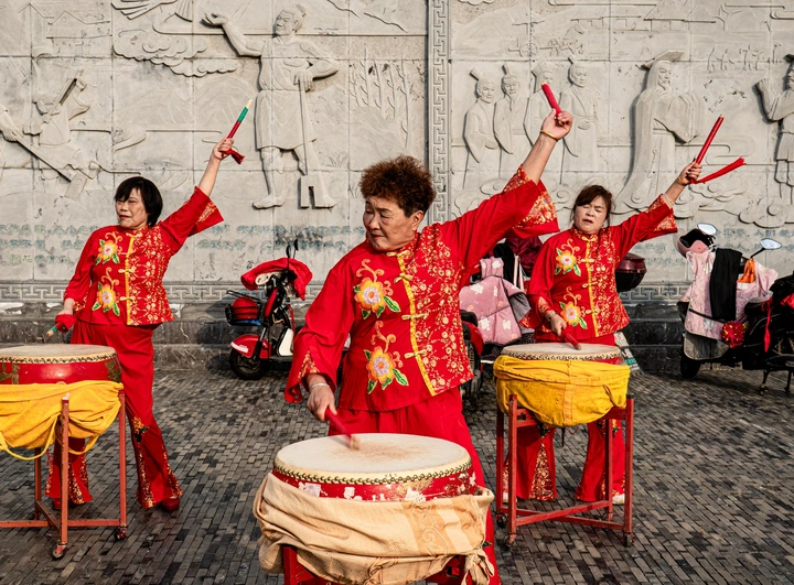 公园里的敲锣打鼓声,映射出了老一辈的活跃,脸上的表情也在充分体现了她们的热爱