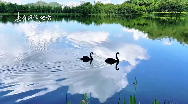 蓝天铺展,云朵似棉,黑天鹅悠游水中,涟漪晕开,把水中的澄澈与灵动,都揉进这方悠然里,这就是“去有风的地方”最好的模样。