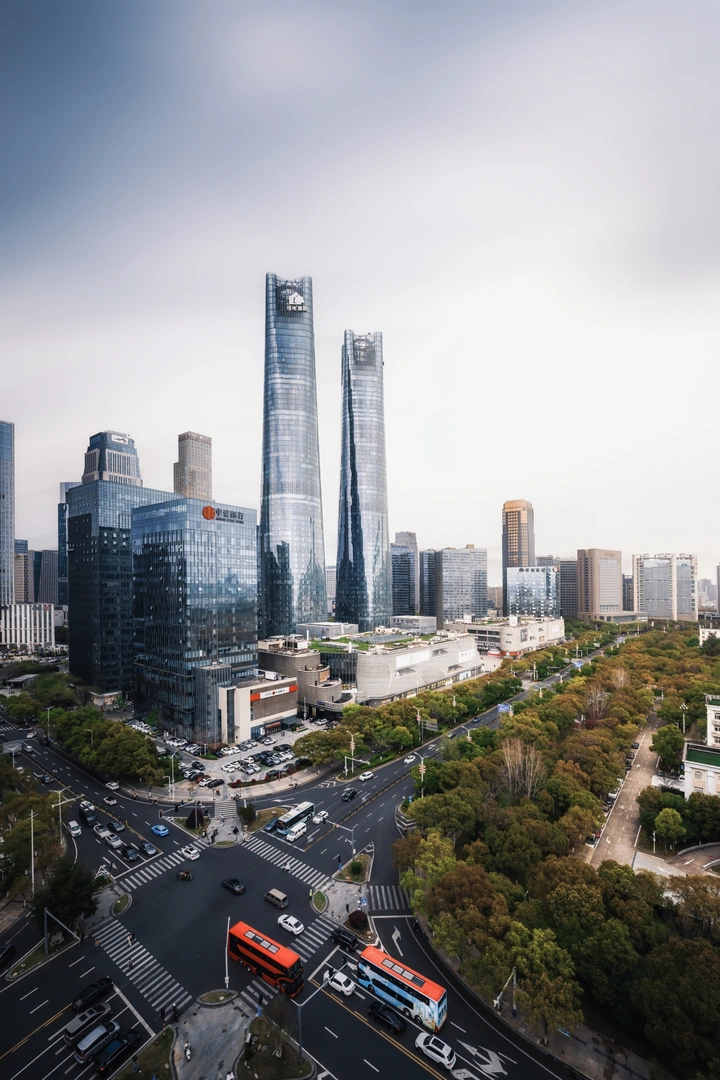 这就是南昌有名地标建筑——绿地双子塔,一左一右,像两个银色的镜子并排立着。玻璃墙上映着天和云,和城市的形形色色。