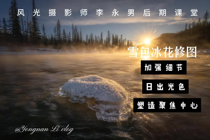 1张 1张- 弓河雪包冰花后期方法- 冬天的冰河上有很多这种雪包,冰花的前景,我们用低角度拍摄他们会形成美丽的细节丰富的前景,围绕这些美丽的元素来修图,看看我如何加强操作。
