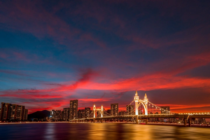 4张落日白石桥