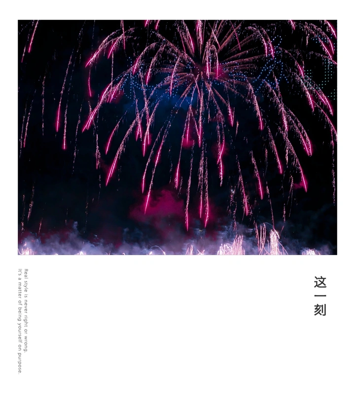 这一刻,烟花挣脱夜的怀抱,在墨色天幕绽开千万点璀璨的星; 这一刻,快门轻扣住光的衣角,让转瞬的绚烂在胶片上定格成永恒; 这一刻,晚风停下流浪的脚步,静静托着漫天光屑,怕惊扰了这场盛大; 这一刻,星光暂时收起锋芒,甘愿做花火的背景,衬它几分热烈与明亮; 这一刻,人群的欢呼凝在喉间,只睁着眼将这璀璨,深深刻进记忆的软壤; 这一刻,光丝织成流动的锦缎,从半空垂落,把夜色染成温柔的模样; 这一刻,时间悄悄放缓了脚步,让每一缕光的绽放,都能被细细欣赏; 这一刻,瞳孔里盛满细碎的亮,像把整片星空,都揉进了凝望的目光; 这一刻,硫磺的气息也变温柔,混着光的暖意,成了此刻独有的芬芳; 这一刻,所有的平凡都闪着光,只因这场花火,点亮了寻常的时光。