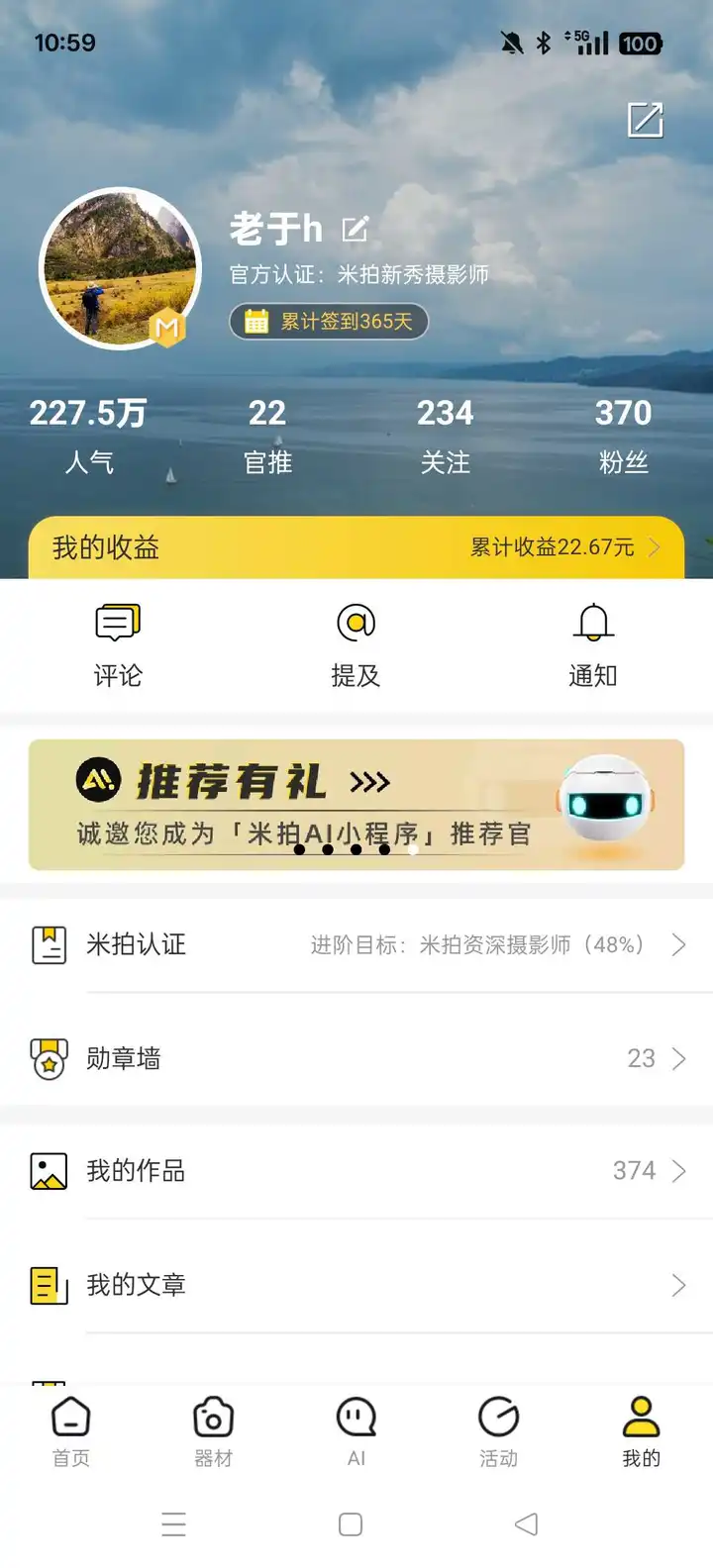 今天是个值得纪念的日子。我在米拍注册一年了,在这365天里,得到了很多摄影师朋友和米拍平台的关心与支持,让我进步不小。这一年里,我获得了227万的人气,22张作品获得官推,我有了370个粉丝,我关注了234个摄影师。感谢米拍,感谢我的朋友们。