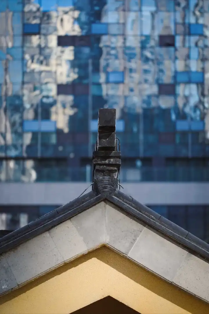 * **构图:** 构图是对称的,将屋顶细节放置在中心。虽然这可以奏效,但缺乏动感。考虑使用三分法则来将主体偏离中心,这可能会带来更吸引人的构图。