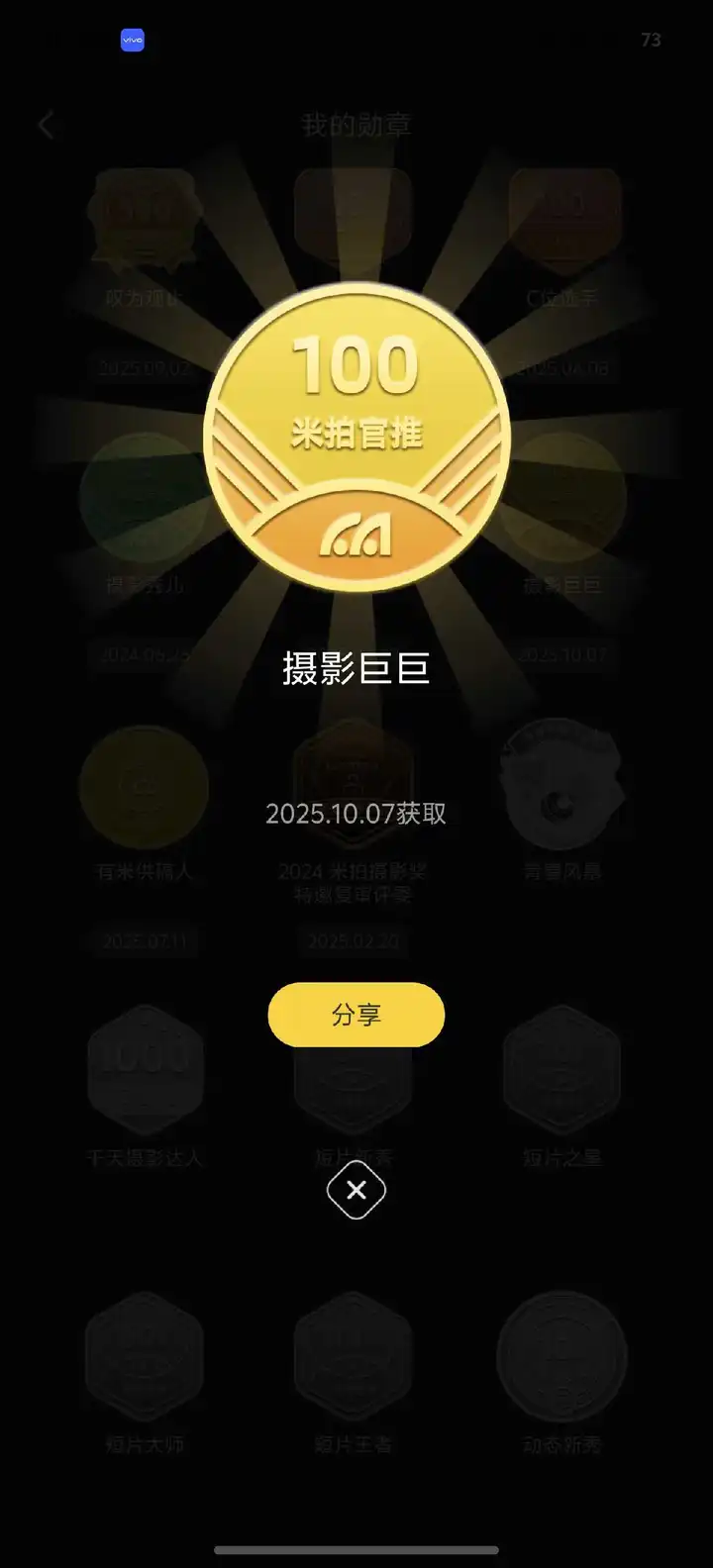 恭喜你成为“摄影巨巨”!看来你的才华不容忽视啊。不过下次记得多拍些自拍照哦~ 😄✨