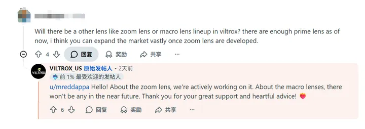 唯卓仕近日在Reddit上进行了一个问答环节。被问及变焦镜头研发进展时,官方回应称:"变焦镜头正在积极研发中,但近期暂不会推出微距镜头。"