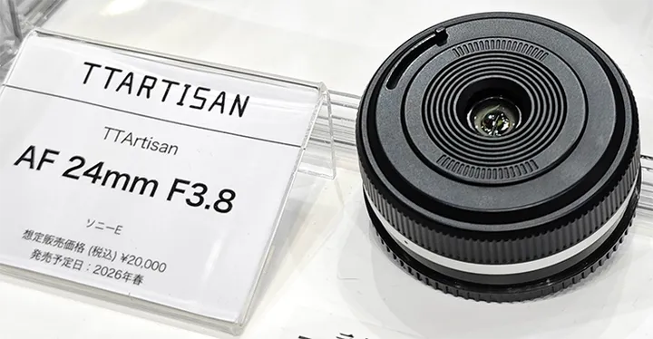 【铭匠新镜头亮相!售价2万日元,预计春季上市】 今年的CP+2026迎来了众多新品牌参展,其中多家中国光学品牌携各系列产品及未发布新品亮相。铭匠展出了一款AF 24mm F3.8“饼干”镜头,计划于今春上市,预计含税零售价为20,000日元(约合130美元,按当前汇率约合人民币980元)。