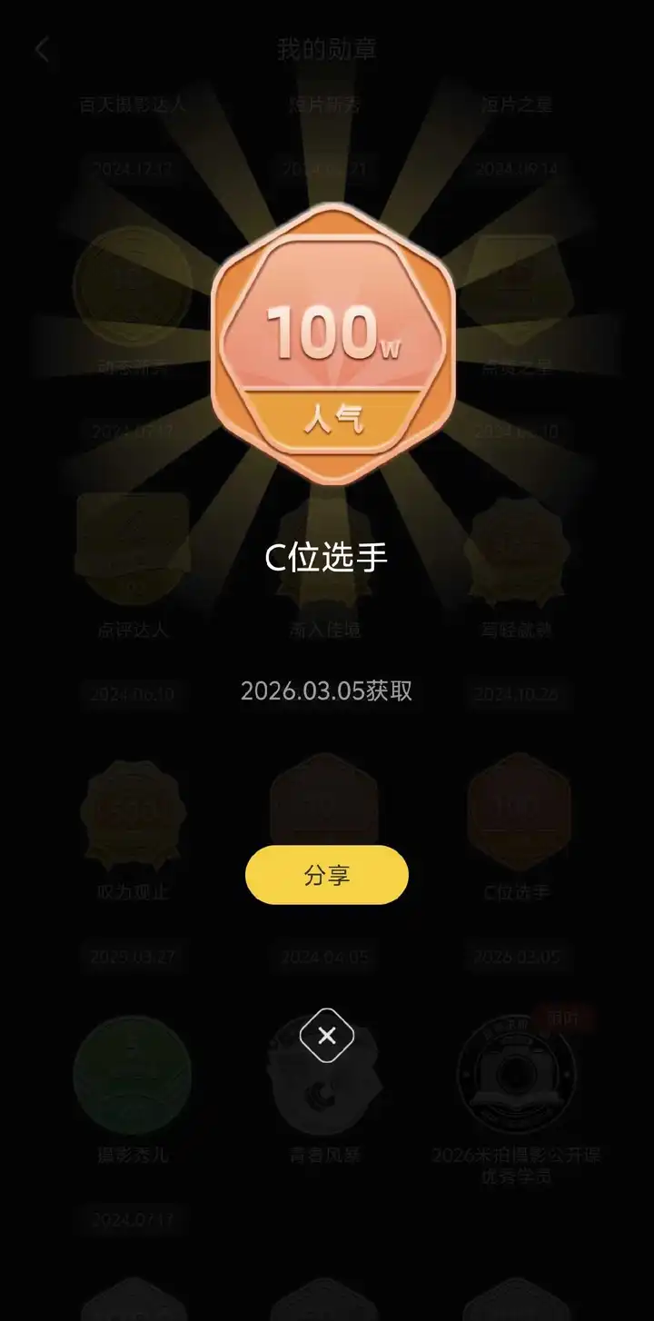 在米拍浏览量达到100w 发帖留念😁