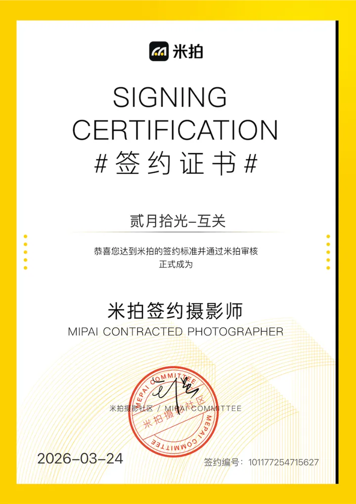 加入米拍一年零二十四天,如愿成为签约摄影师啦! 感谢米拍平台给予的机会和陪伴、感谢支持我的朋友、也感谢努力的自己。 未来继续加油!奔赴光影、步履不停!