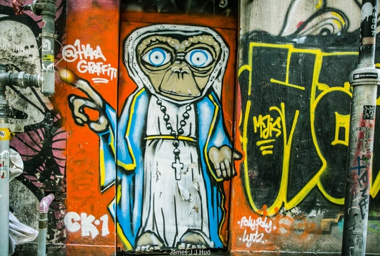 很喜欢涂鸦,虽然拍涂鸦所需的拍摄能力不用很强,但是我觉得不同的心情去看涂鸦所看到的感觉是不一样的。每个涂鸦反映的故事都是不一样的。