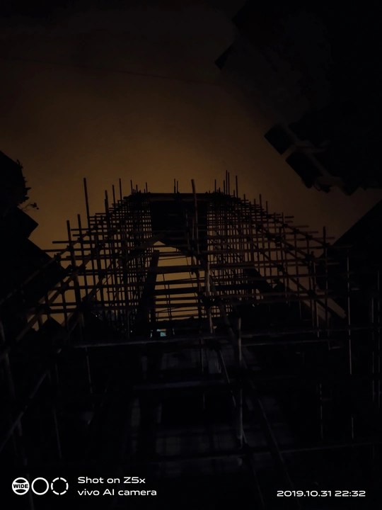 小区在修玻璃单立电梯,在夜晚显得格外有意境