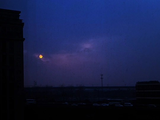 清晨七点多的太阳,又圆又亮,像是月亮来客串了一回。
