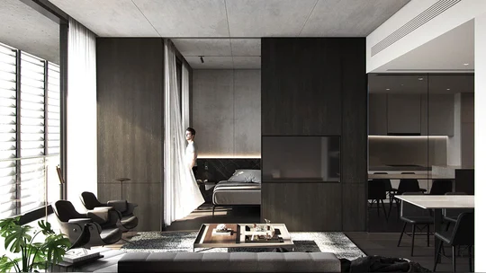 ZINGVR室内设计·新加坡马丁38号住宅 设计工作室:932 Designs 马丁38号的墙壁会移动,厨房会消失,干净的线条和活动的墙壁定义了一个不断变化的空间,允许无限的可能性。